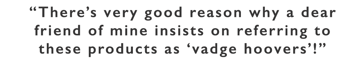 The difference between products is really down to quality of the workmanship and much depends simply on which shape feels better in your hand. Some are big enough to feel as though you’re clamping a 1970s hairdryer to your nether regions, but the payoff is that they often have the best power output. There’s very good reason why a dear friend of mine insists on referring to these products as ‘vadge hoovers’!